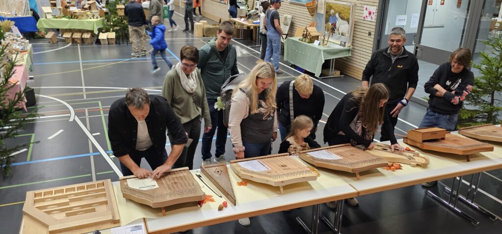 Die Ausstellung stiess beim zahlreich erschienenen Publikum auf grosses Interesse. Die Werke reichten von schön gemalten Landschafts- und Tierbildern über das Fabrizieren von „Halmbäsä“, „Geburts-Täfäli“ und wunderschön verzierten Kerzen bis zu Tafeln mit Sinnsprüchen, Strohsternen, gebrannten Wassern oder Wurstwaren. Besonders speziell waren die Stände von Fredy Heinzer (Zitherbau), von Toni Ulrich (VW-Bus-Oldtimer-Wohnmobil aus dem Jahr 1967) oder von Paul Betschart, der mit grosser Ausdauer von Grund auf einen Töff selbst baut, samt Zweizylinder-Motor, alles ohne Computer unterstütze Maschinen. Die jüngste Generation zeigte sich technisch voll auf dem neusten Stand. Die drei Schulkinder Elea, John und Jan präsentierten nämlich Produkte, die sie mit ihrem 3-D-Drucker ausgedruckt haben. In der Festwirtschaft – im heimeligen „Jägerstübli“ – wurde rege diskutiert. So kamen die Leute ins Gespräch miteinander und liessen sich bei Ländlerklängen (Michael Heinzer, Tobias Betschart und Daniel Zwyer) kulinarisch verwöhnen.